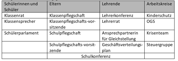 Folgende Mitbestimmungsgremien sind daher an unserer Schule fest verankert: