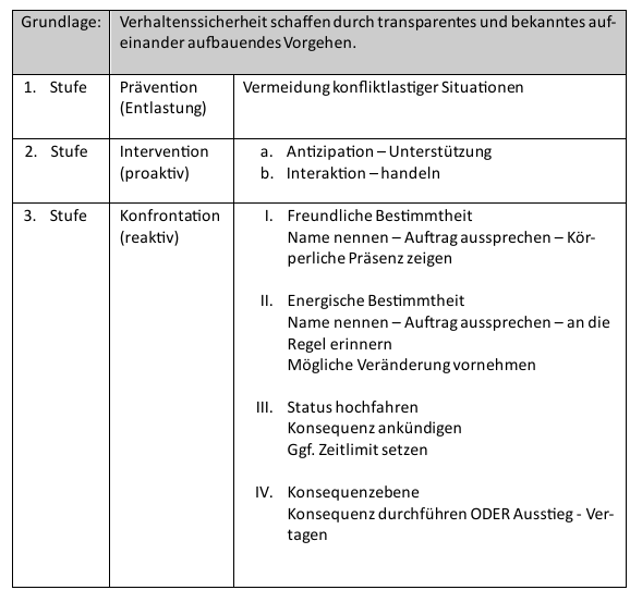 „Kinder … benötigen das Gefühl, mit aufrichtig gemeinter Wertschätzung wahrgenommen, begleitet, gehalten und begrenzt, d.h. kontrolliert und konfrontiert zu werden.“(Zitat aus „Manual zur Erstellung eines schulischen Konzepts“)